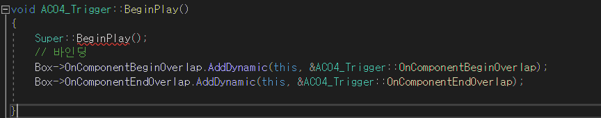 현재 수업시간에 C++에서 충돌감지 컴퍼넌트에서 AddDynamic 매크로를 동해, 충돌시 등록한 CallBack함수를 호출하는식으로 진행하였다.