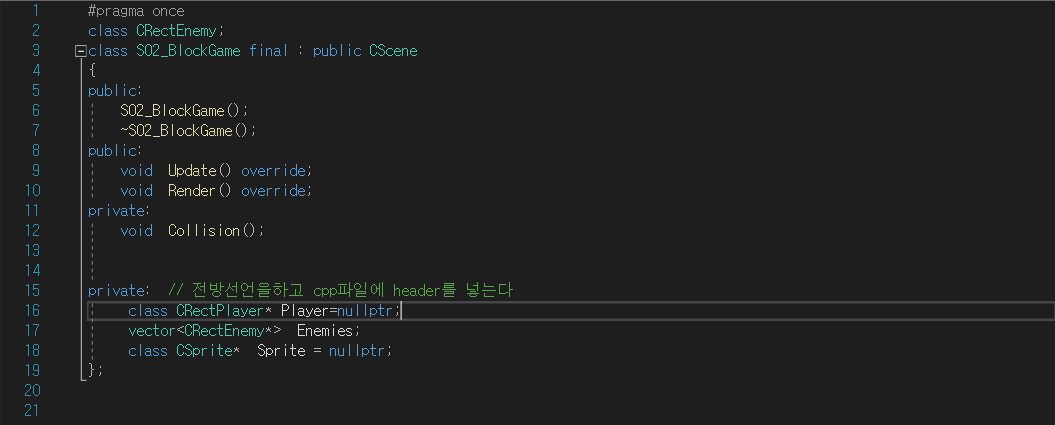 Update()와 Render()을 override 지정어를 사용해서 받아준다.