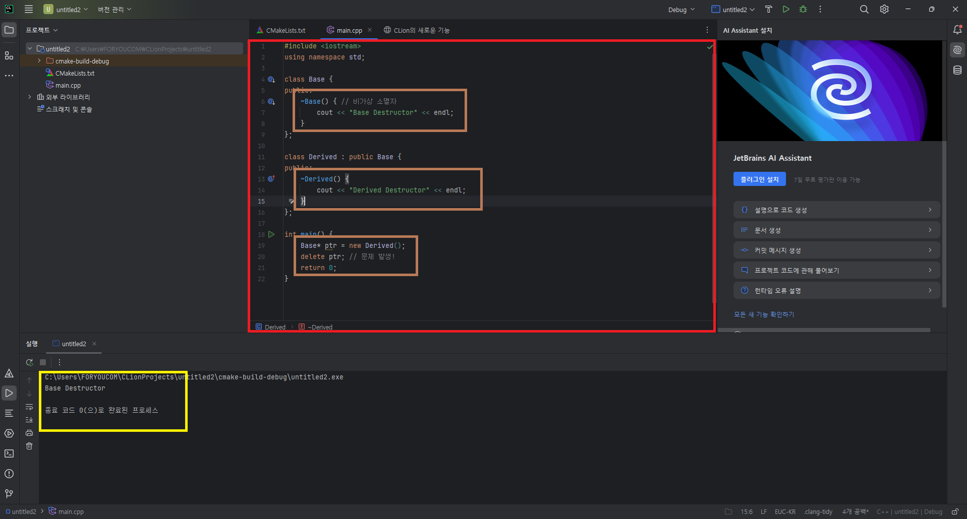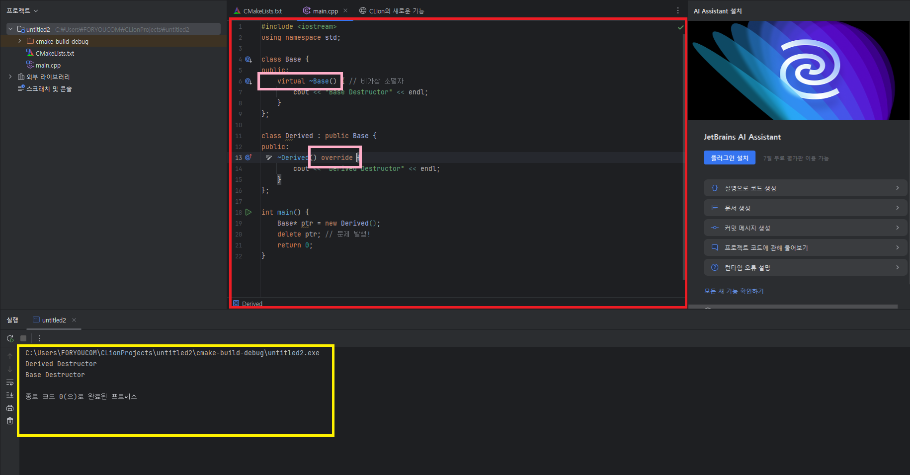 Base* ptr = new Derived(); 로 선언을 하였다.