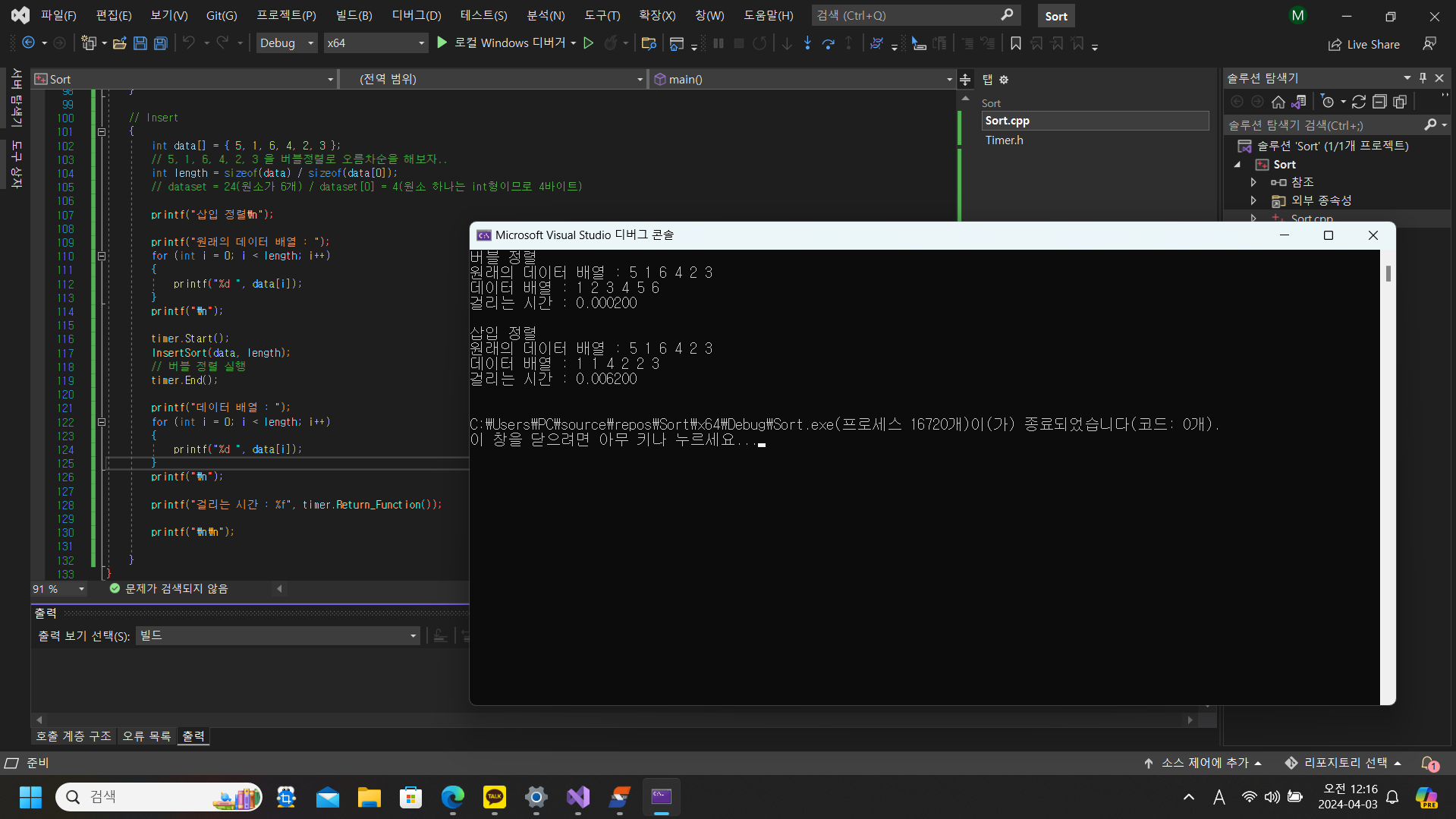 // 버블 정렬 실행