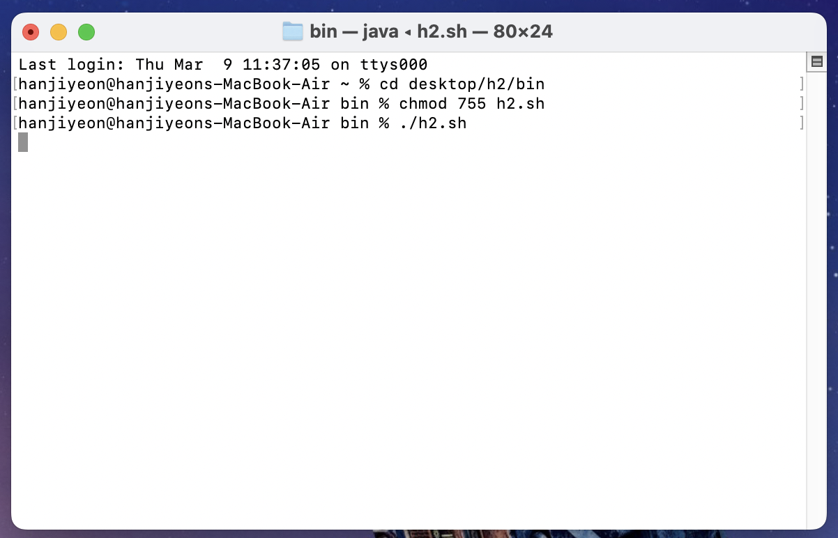 1.cd /[내가 h2 파일을 저장한 위치]: 해당 파일을 찾아간다.
