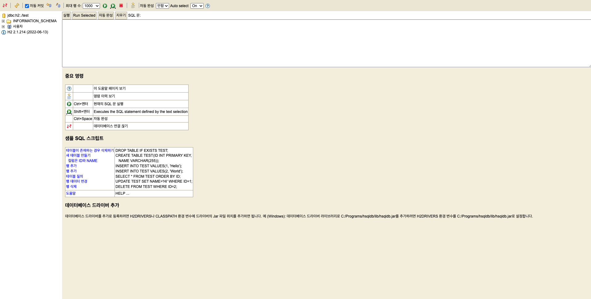 내가 h2 database 설치 방법을 포스팅하는 이유가 여기에 있다. 아마 그냥 연결을 하면 당황스러운 상황을 마주할 수도 있다.