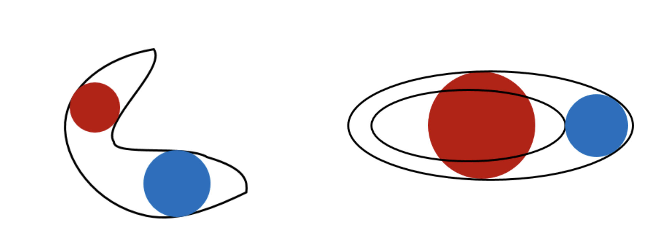 왼쪽 그림처럼 하나의 영역에 내접원이 여러 개 존재하는 경우도 있고, 오른쪽 그림처럼 영역 안에 영역이 있어 내접원의 중심이 해당 영역에 포함되지 않는 경우도 있었습니다.