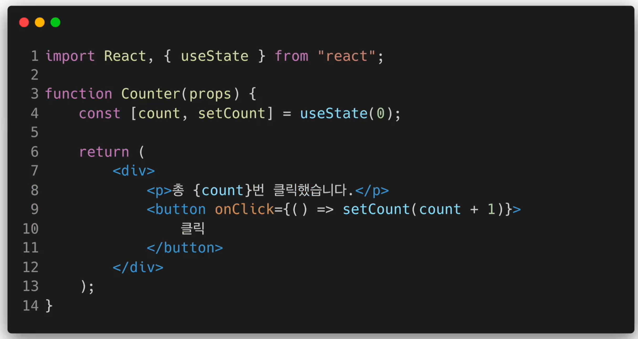 const [변수명, set함수명] = useState(초기값);