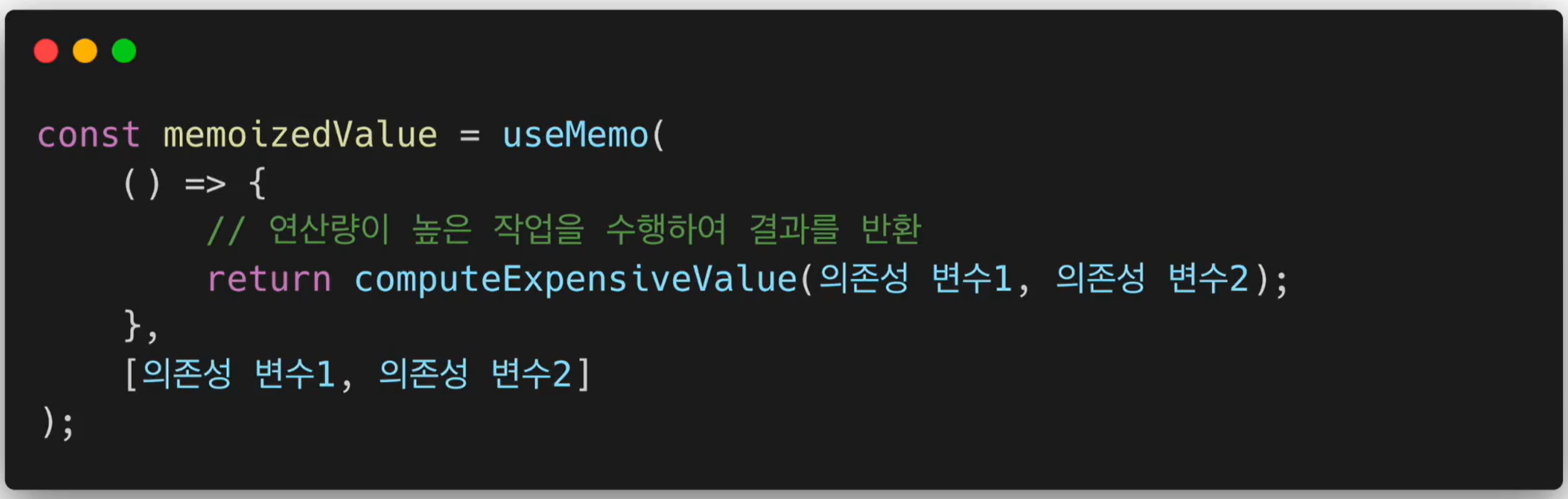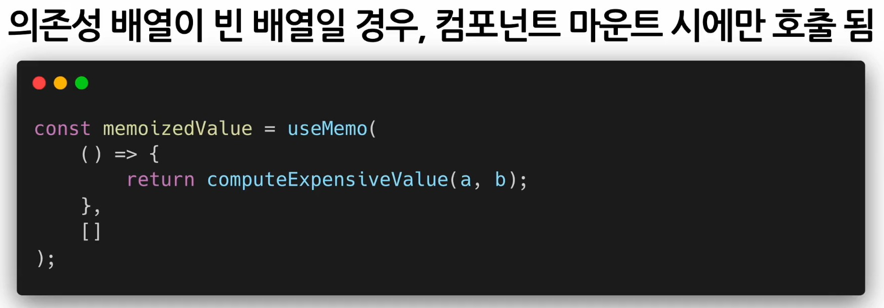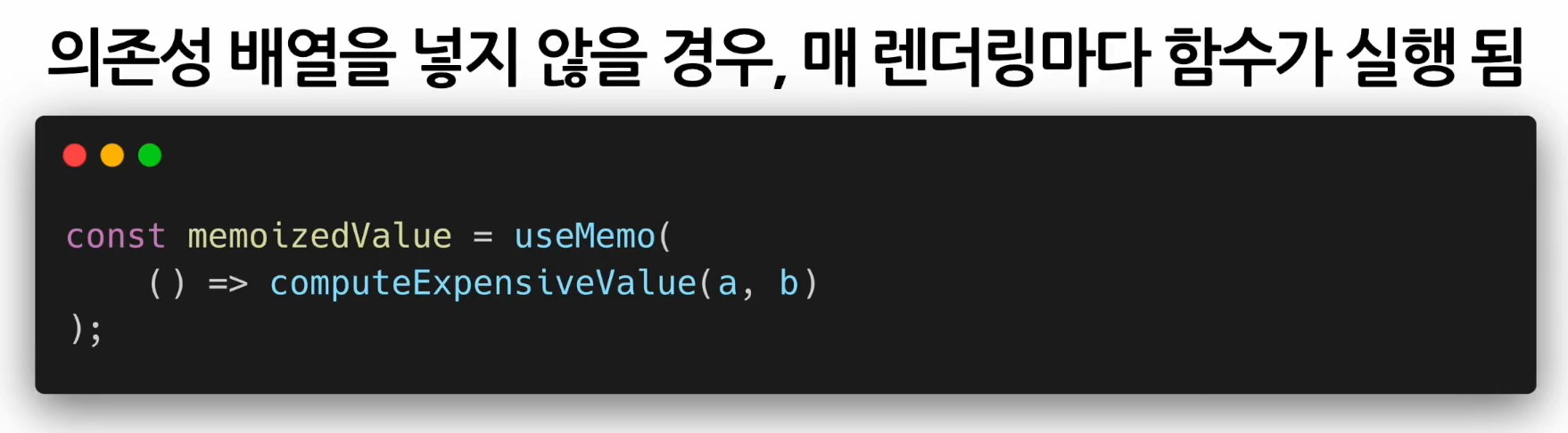 - useMemoHook에 의존성 배열을 넣지 않고 사용하는 것은 아무런 의미가 없음