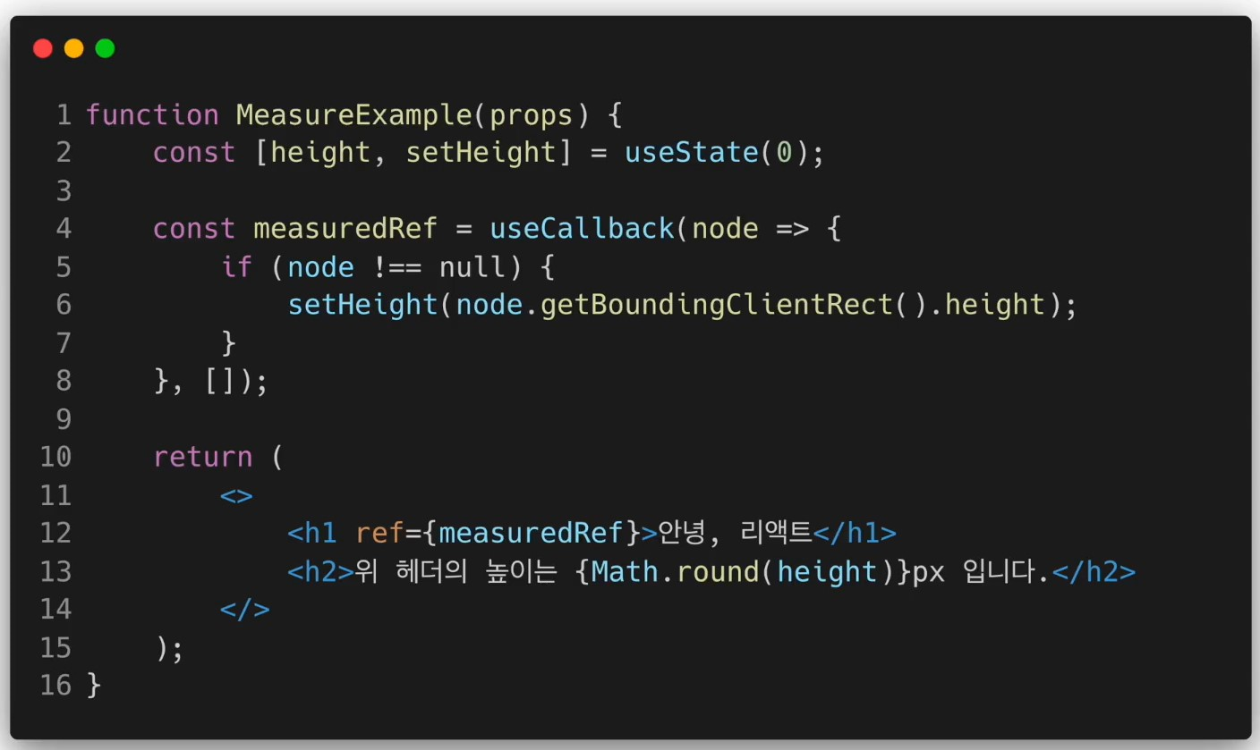 - ref에 돔 노드가 연결되거나 분리되었을 경우 실행하고 싶을 때 사용