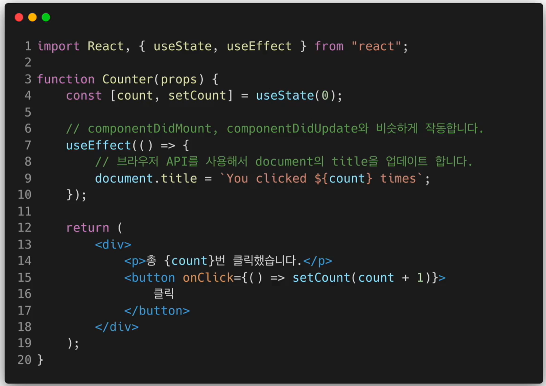 - React v16.8 이상부터 사용 가능