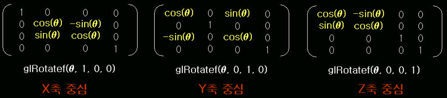 한 축을 기준으로 어느 각(쎄타)만큼 이동시킬 때 아래 와 같은 매트릭스가 사용됨.