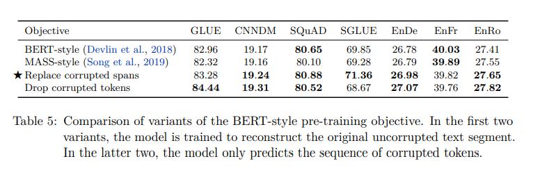 마지막으로 T5가 채택한 것을 정리하면 다음과 같다.