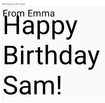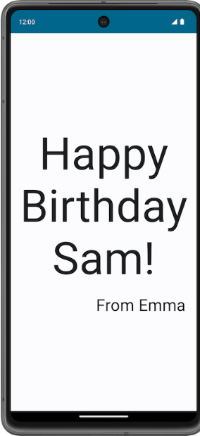 fun Greeting(message: String, from: String, name: String, modifier: Modifier = Modifier) {
