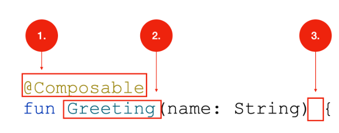 @Componsable 어노테이션으로 표시된 모든 함수는 setContent() 함수 또는 다른 구성 가능한 함수에서 호출할 수 있습니다.