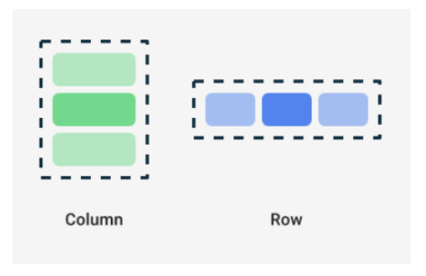 Compose의 세 가지 기본 표준 레이아웃 요소는 구성 가능한 함수인 Column, Row, Box 입니다.