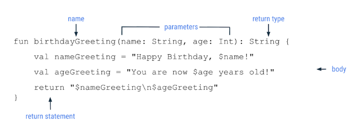 fun birthdayGreeting(name: String, age: Int): String {