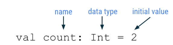 다음 코드 줄에서는 초깃값이 제공되지 않으므로 데이터 유형을 지정해야 합니다.val count: Int