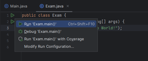 13) 새로운 클래스 생성 > Exam 이란 클래스를 생성해볼 것임.