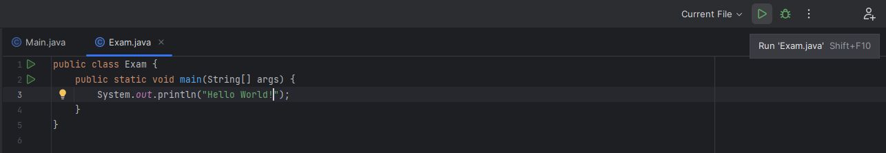 16) 소스코드에 있는 재생버튼 또는 오른쪽 상단에 있는 재생버튼을 통해 소스를 실행시켜 볼 수 있다.