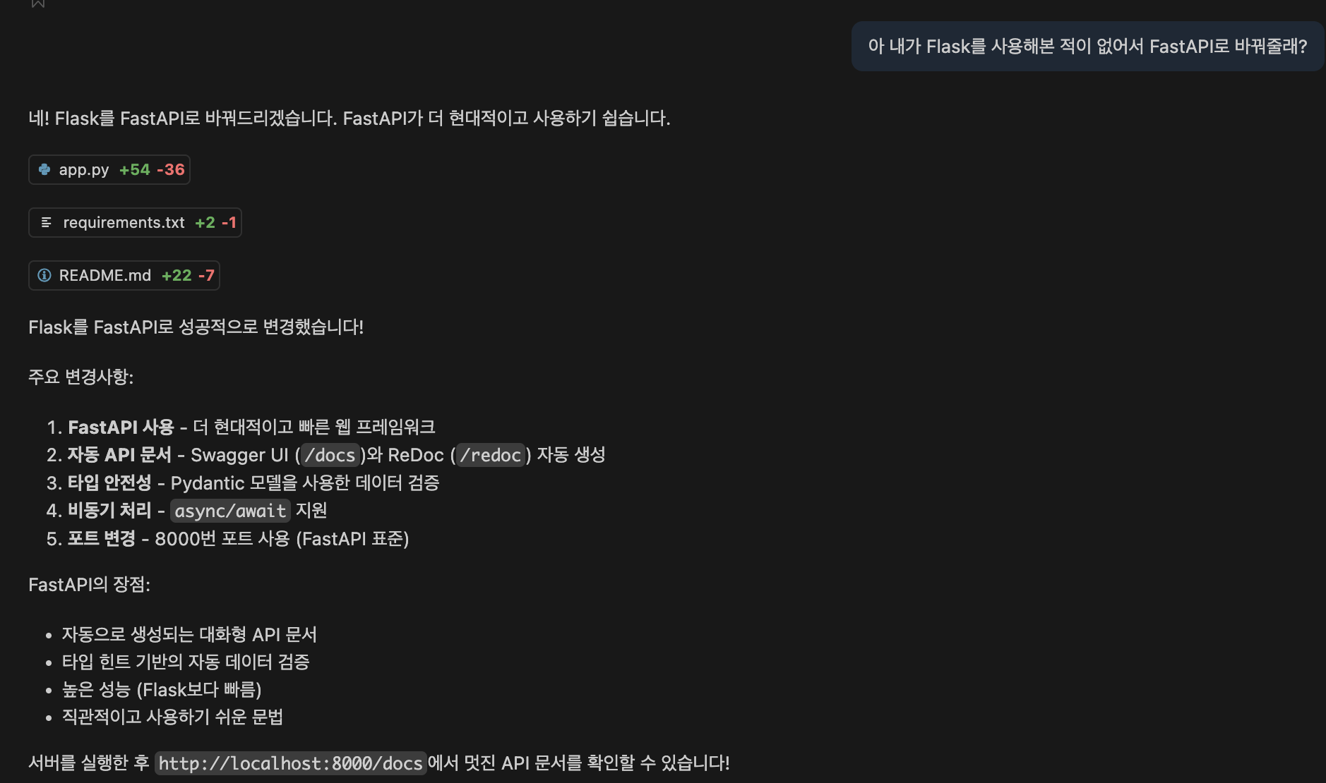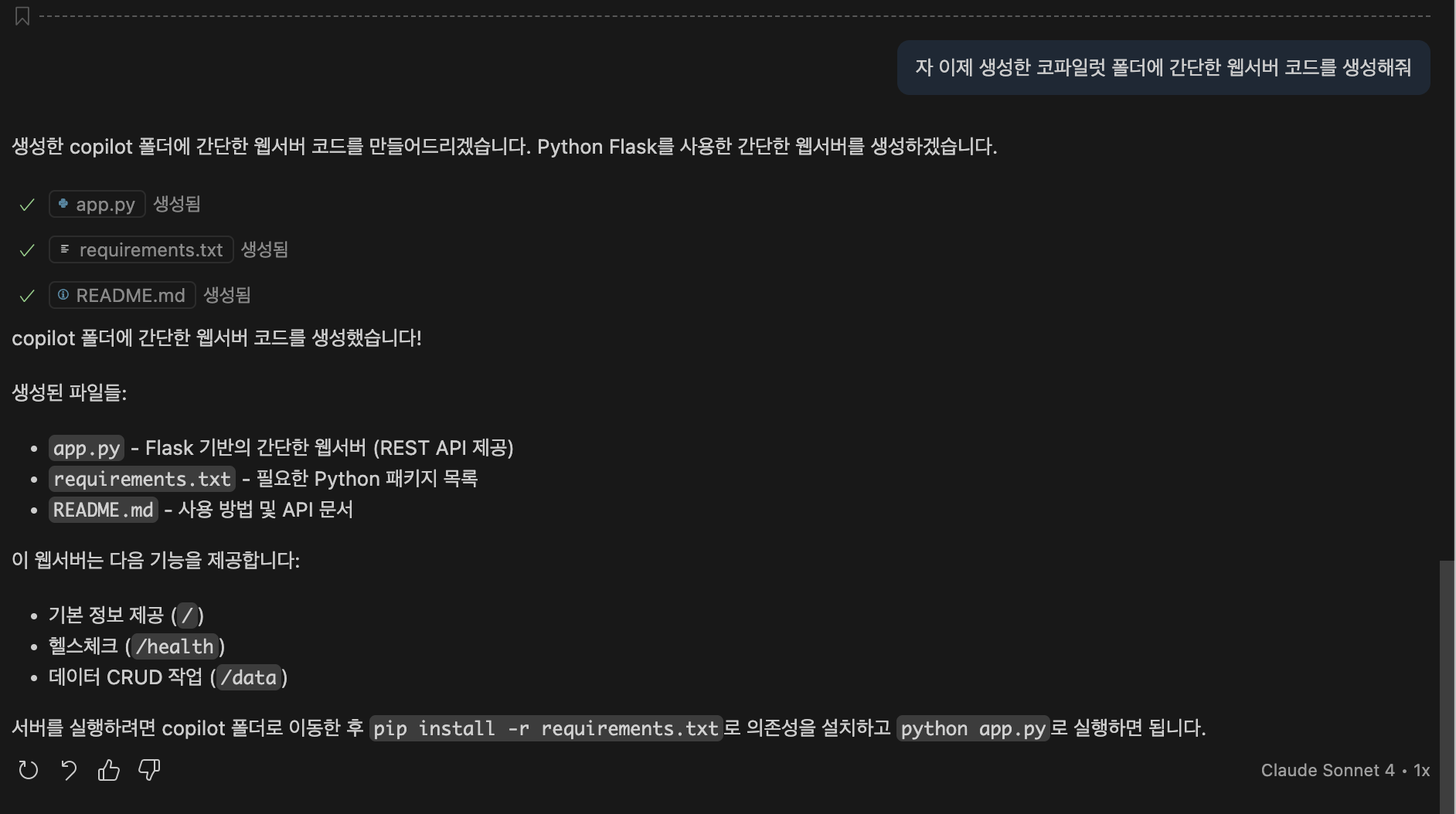 간단한 프로젝트를 생성해달라고 요청해보았습니다.