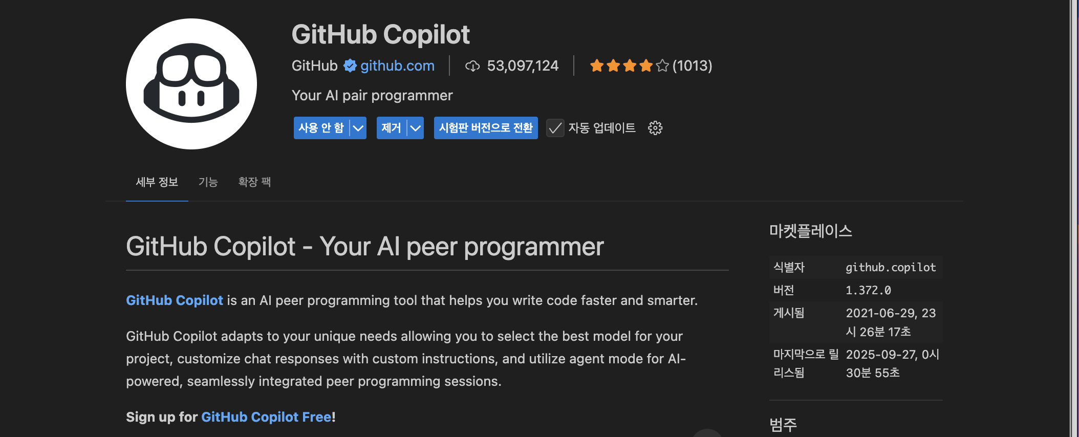 저는 VSCode를 열어 GitHub Copilot Extension을 설치했습니다.