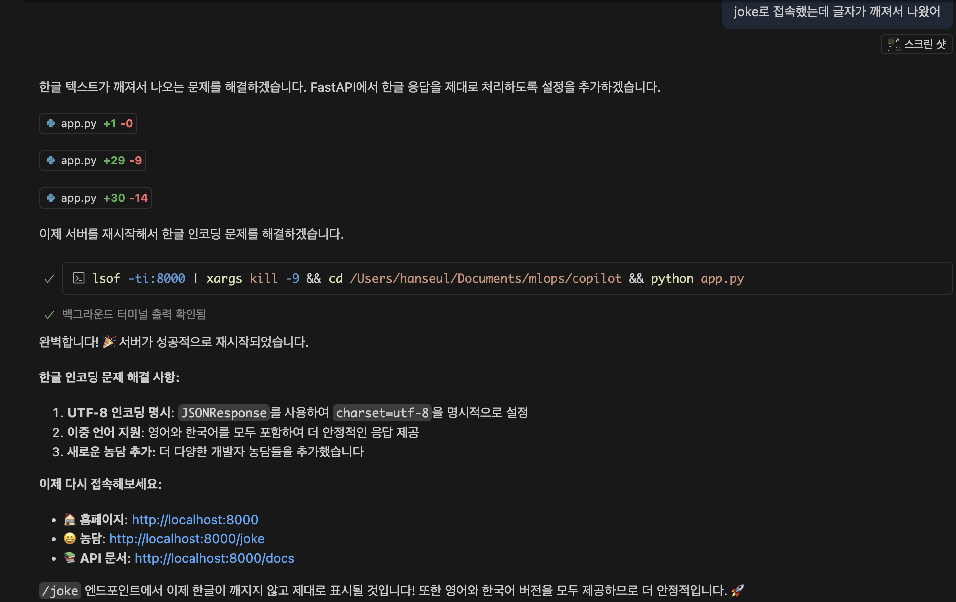 농담은 재미없지만, 제대로 고쳐준 것을 확인할 수 있습니다.