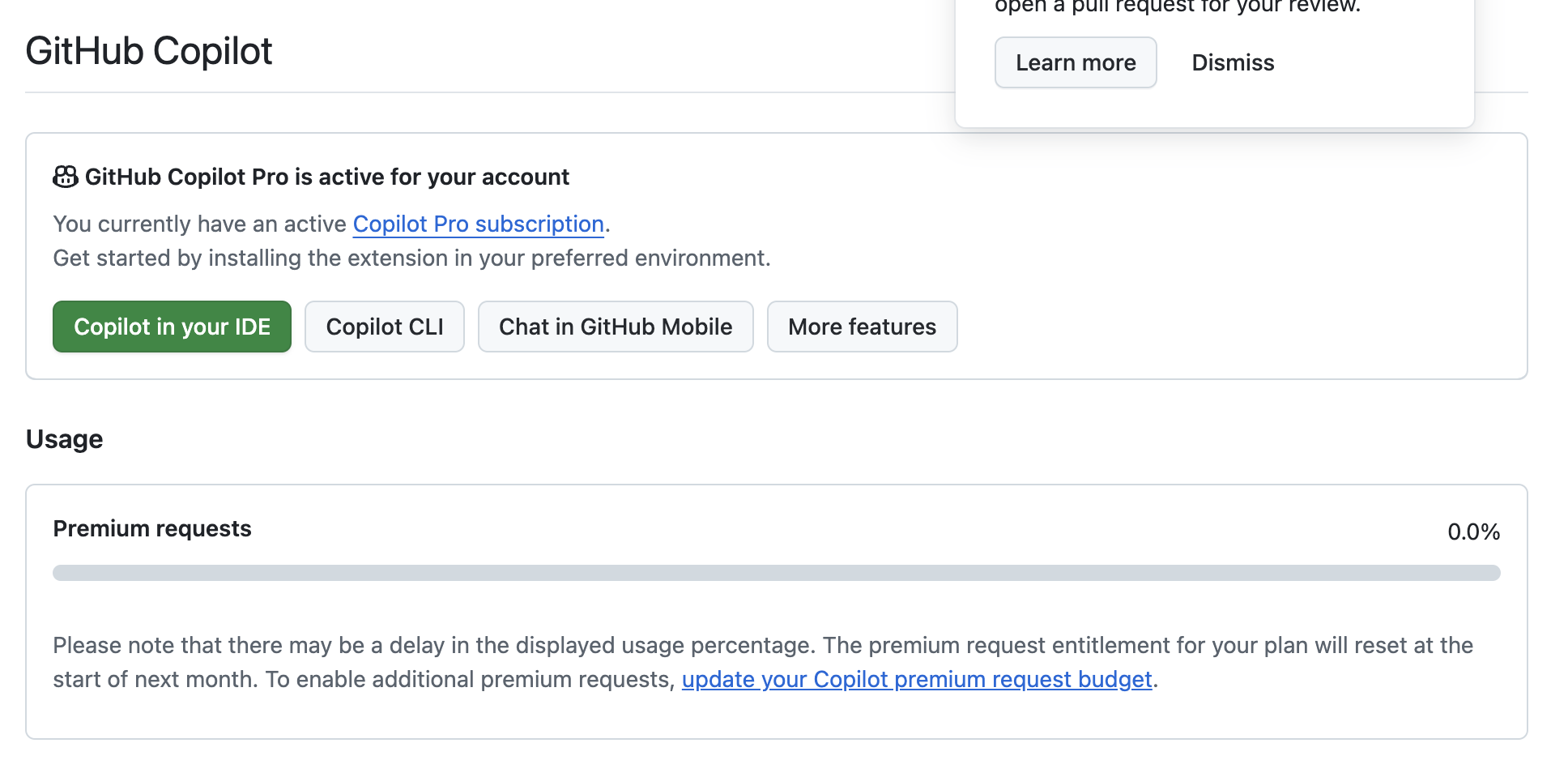학생이라면 GitHub Education 인증을 받을 수 있고, 인증이 완료되면 Github Copilot Pro를 무료로 사용할 수 있습니다.