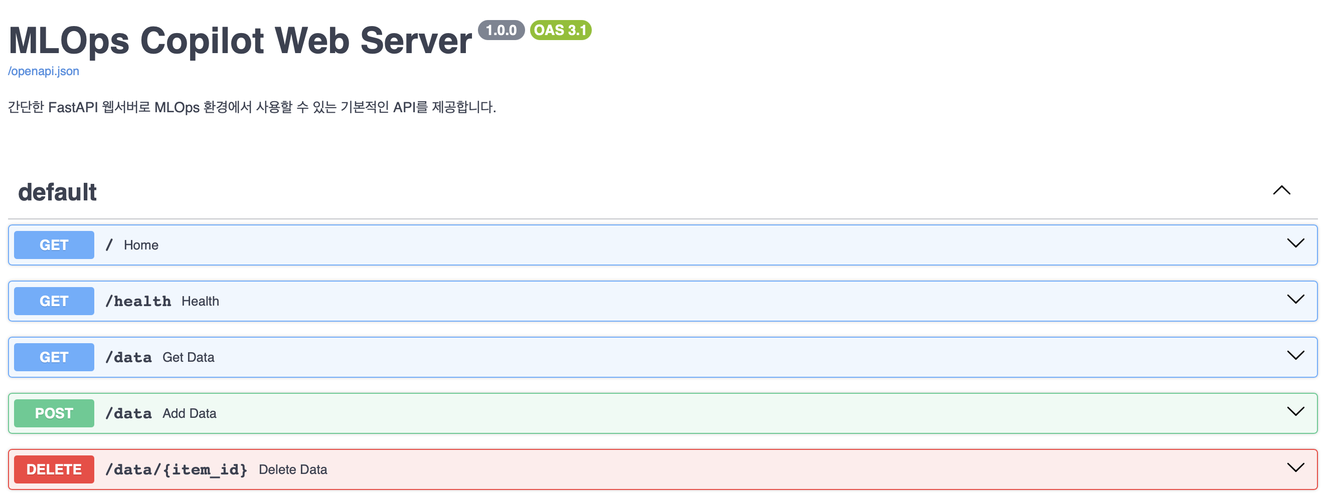 스웨거로 접속해보니, 잘 만들어진 것을 확인할 수 있습니다.