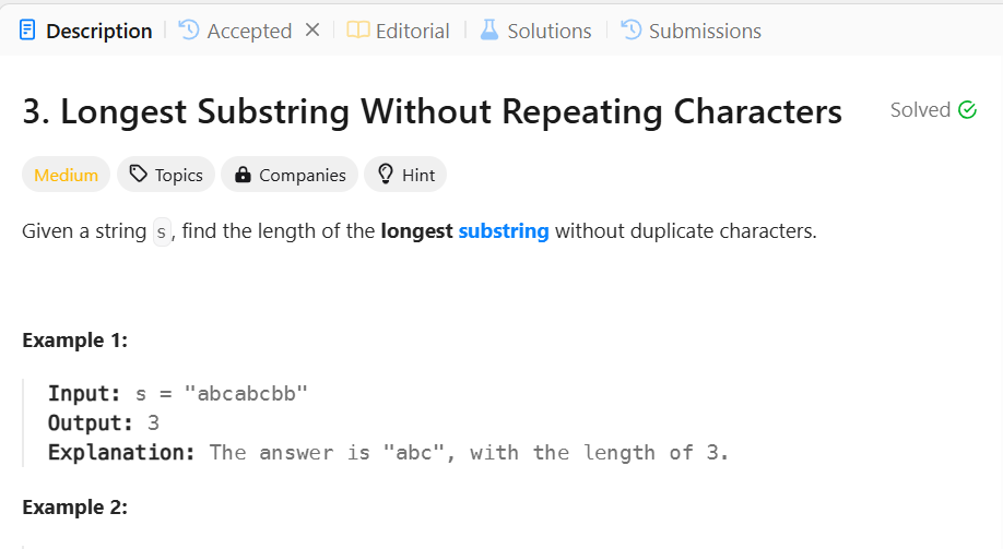 중복 발견 전까지는 계속 문자를 더해가며 순회하다가, 중복 발견하면 그 즉시 다음 인덱스로 left포인트를 이동시킴.