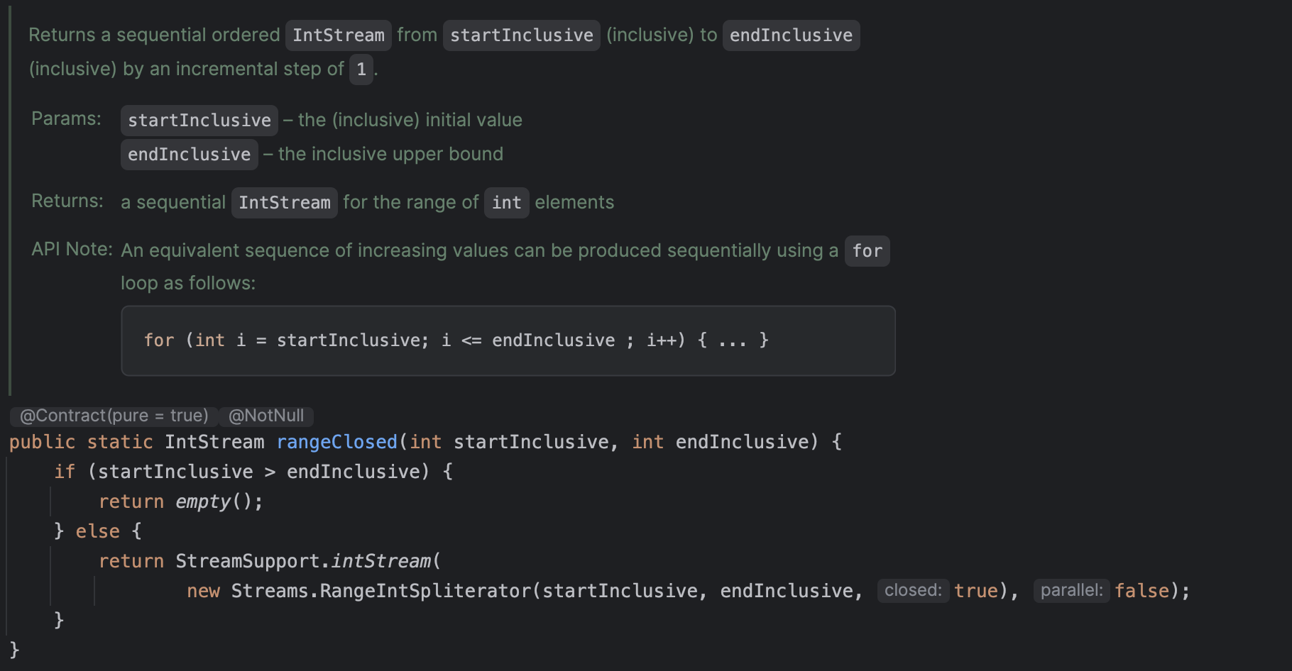 의 범위이다. 확인하는 가장 빠른 방법은 ide에서 바로 javadoc을 확인하는 것이다.
