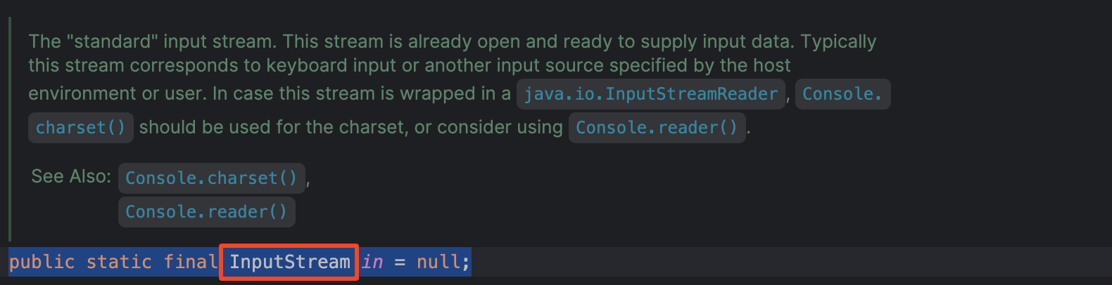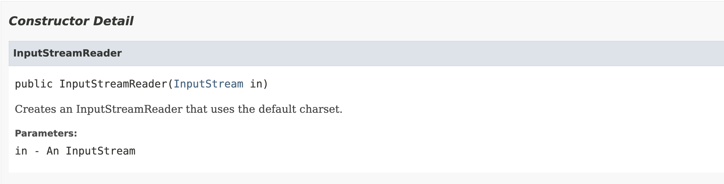 System 클래스에서 in의 타입을 찾아보니, InputStream이란것을 알 수 있었다. 즉, Reader의 subclass중 생성자의 매개변수로 InputStream 타입을 갖고 있는 클래스를 찾으면 된다.