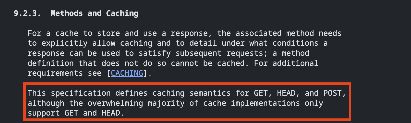 사실 POST도 스펙에 따르면 캐쉬 최적화가 가능은 한데, 제한이 많아서 거의 GET만 한다고 한다.