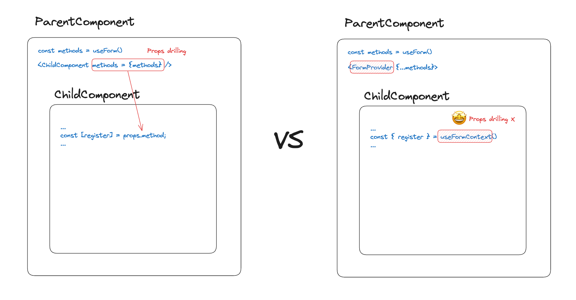 만약 부모 컴포넌트가 FormProvider 로 감싸져 있고, 그 하위에 여러개의 자식 컴포넌트가 있고, 그 자식 컴포넌트 중에서 useFormContext 를 사용하는 컴포넌트가 있다면, 해당 useFormContext 를 사용하는 컴포넌트의 로컬 폼 상태 변경이 발생하면 그 컴포넌트와 그의 하위 컴포넌트 들이 리렌더링 될 수 있다.