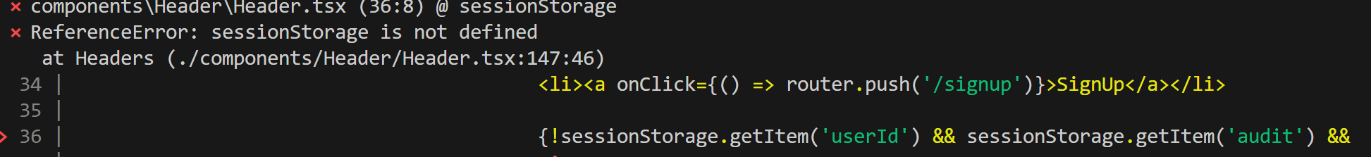 헤더 컴포넌트에서 세션 스토리지를 사용할려고 했다