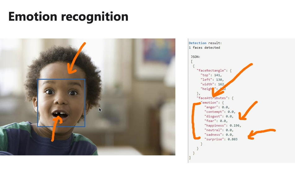 나이, 성별, 웃는 정도, 수염, 감정, 머리 각도 등 다양한 얼굴의 특성을 확인한다.