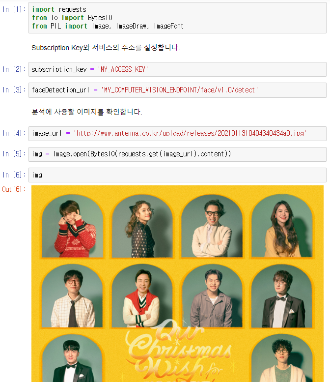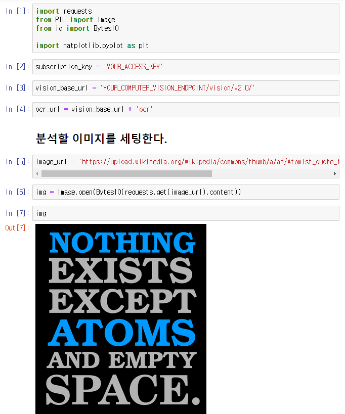 Python으로 이미지 분석을 하기 위해 접속키(subscription_key)와 접속할 수 있는 url(vision_base_url)이 필요하다.