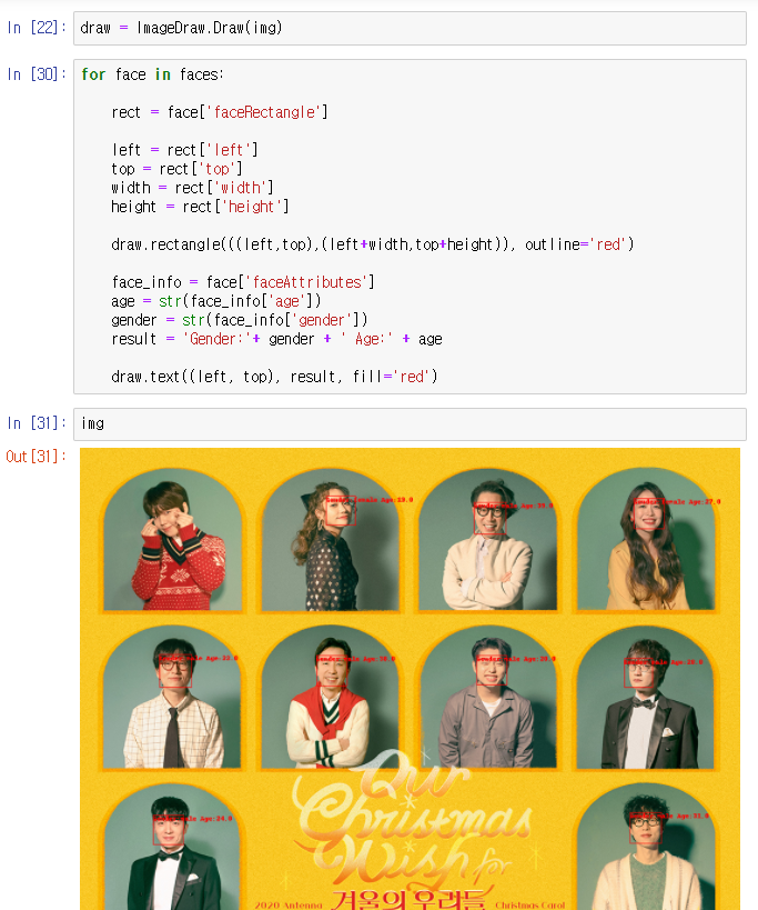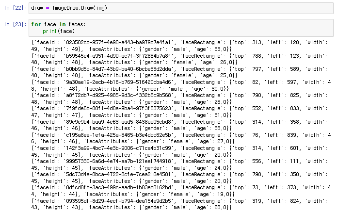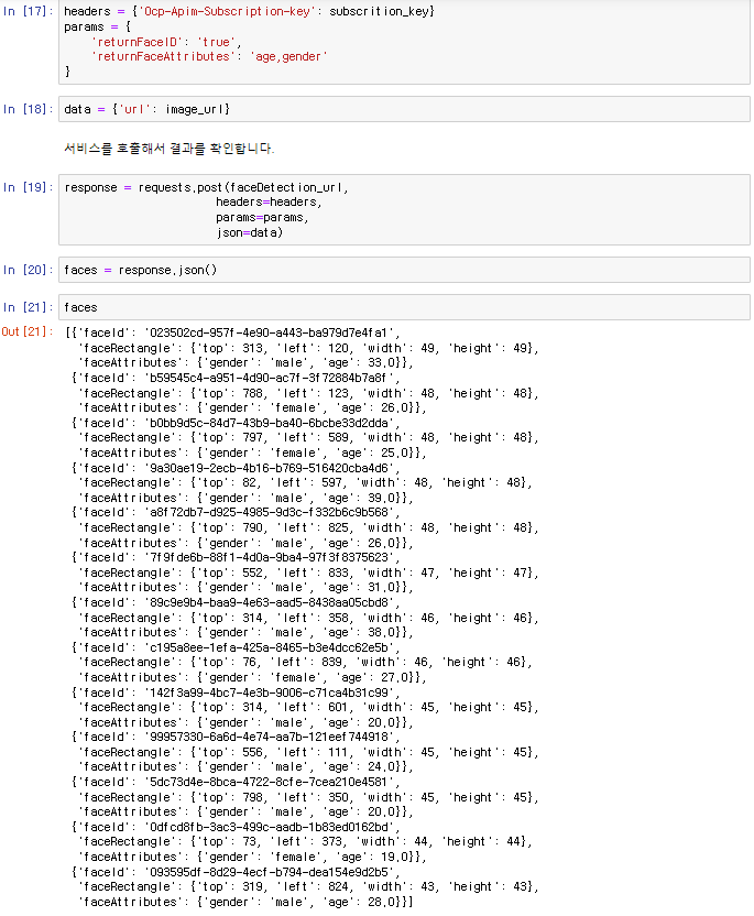 #페이스 아이디, 나이와 성별정보를 가져온다