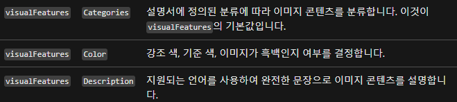 prams = { 'visualFeatures' : 'Categories,Description,Color'}