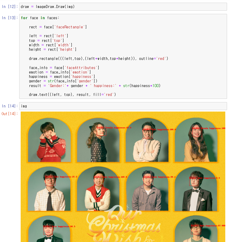 #faceAttributes 안에 있는 emotion의 happiness 정보를 불러온다