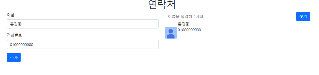 이름과 전화번호를 받아 추가하고 이름으로 해당 정보를 찾는 웹페이지를 만든다