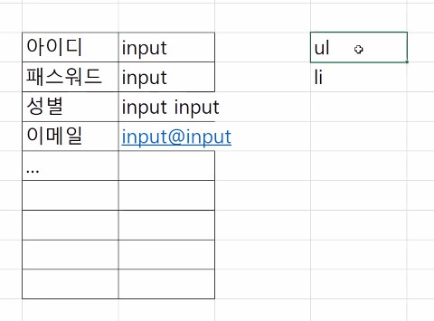 <tr>이 4개 이상 필요하다. <td>는 2개 씩, <td> 안에는 어제(211220) 배웠던 <input>엘리먼트의 다양한 속성값들을 활용했다.