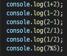 더하기(+), 빼기(-), 나누기(/), 나눈값의 나머지(%) 등이 있다.