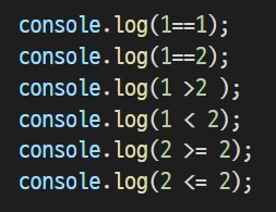 값과 값 사이에 들어간다. 누가 크고 작은지, 누가 같은지 연산할 때 쓴다.