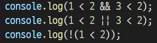 위 예시에서는 !(참);이니까 false로 반환된다.