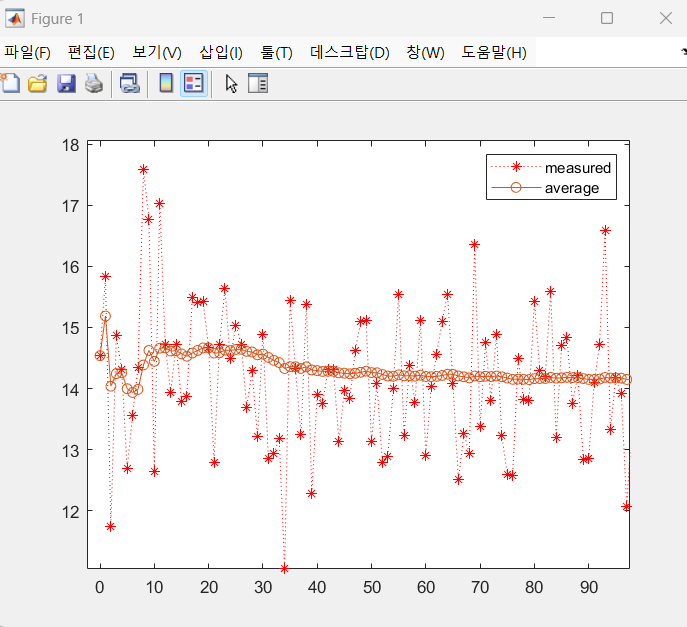 alpha = (k-1)/k; %평균의 가중치를 결정시킴 -> k가 늘어나면 과거데이터에 영향이 커짐