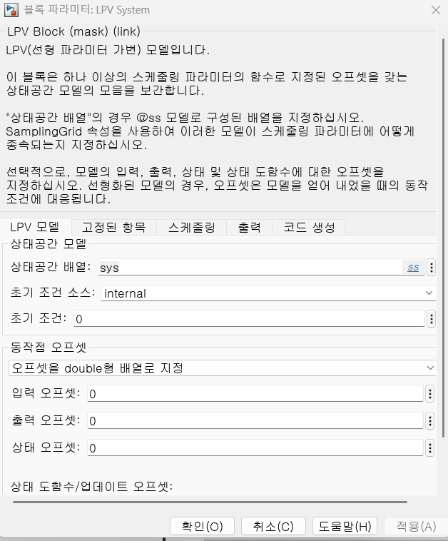 LPV 시스템은 다음과 같은 수학적으로 표현할수 있음