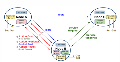 ▪ 노드내매개변수 또는 글로벌매개변수를 서비스 메시지 통신방법을 사용하여 노드 내부 또는 외부에서쉽게지정(Set) 하거나 변경할 수 있고, 쉽게 가져(Get)와서 사용할 수 있게하는점에서목적이다르다.