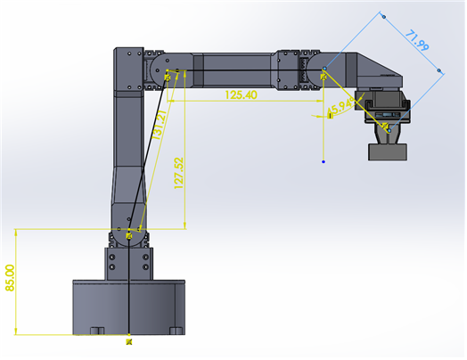 로봇팔은 다이나믹셀 AX-12A로 구현하였고 openmanipulator-x의 외형을 모티브 삼아 제작하였다.