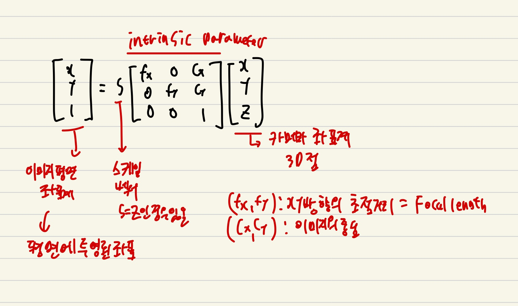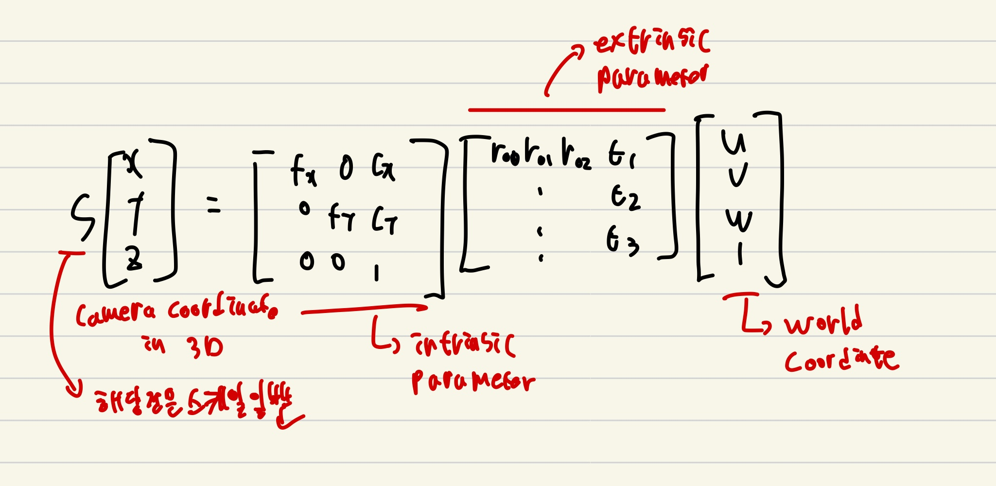 camera coordinate 좌표에 intrinsic parameter를 곱하면 Image coordintes 좌표를 구할수 있음