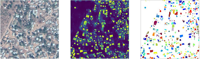 - 또, 각 픽셀을 빌딩 또는 빌딩이 아닌 것으로 분류한 다음 이를 개별 인스턴스로 그룹화해 상향식으로 건물을 감지하도록 모델을 교육했다. 건물 탐지 기술은 위성 이미지 분석에 흔히 사용되는 U-Net 모델을 기반으로 한다. 비교적 간편한 아키텍처이기 때문에 컴퓨팅 부담이 크지 않고 다량의 이미징 데이터에 적용할 수 있다는 장점이 있다.
