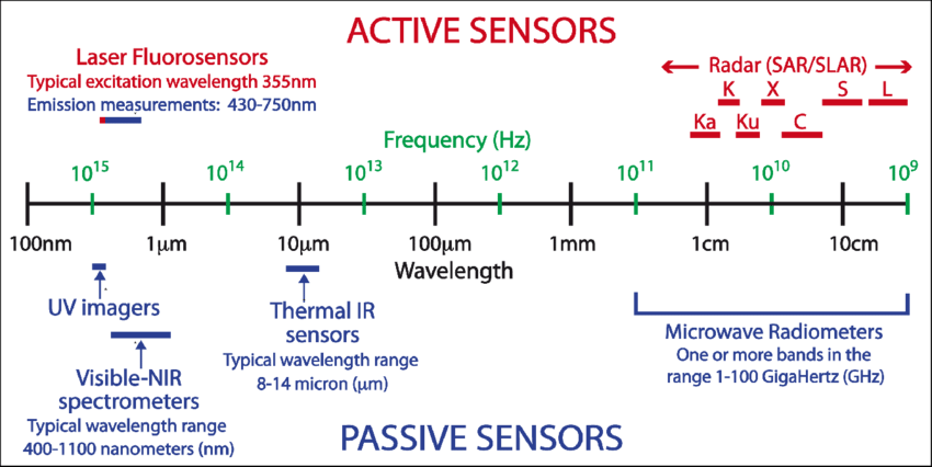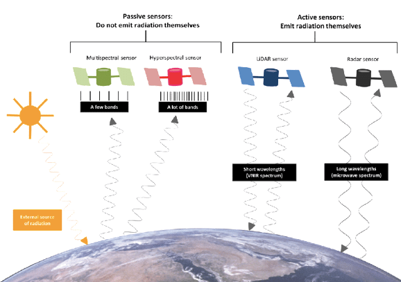 - 위성 영상은 크게 Passive 영상과 Active 영상으로 구분할 수 있다.
