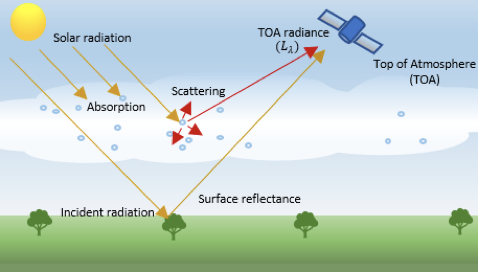 - 흡수, 반사, 산란 등의 현상으로 실제 지표 반사도와 센서 값이 달라짐