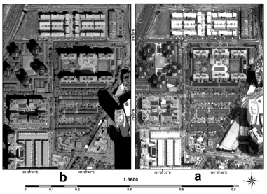 - 위성의 촬영각, 지형 등에 의한 영향을 제거하여 수직방향에서 보는 것과 같이 보정